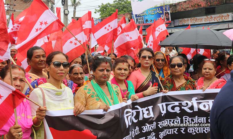 १५ साउन, काठमाडौं । विपक्षी नेपाली कांग्रेसले सरकारविरुद्ध कडा नाराबाजी गर्दै मंगलबार देशव्यापी विरोध प्रदर्शन गरेको छ । राजधानीसहित देशका सबै जिल्ला सदरमुकाममा कांग्रेसका नेता कार्यकर्ताले जुलुस र सभाहरु गरेकाOnlinekhabar