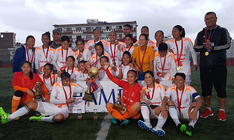 १५ साउन, काठमाडौं । सावित्री भण्डारीको ह्याट्रिकको मदतमा सशस्त्र प्रहरीको एपीएफ क्लबले उपराष्ट्रपति महिला लिग फुटबलको उपाधि जितेको छ । मंगलबार भएको खेलमा एपीएफले अर्को विभागीय टोली नेपाल आर्मीलाई ३-१ ले