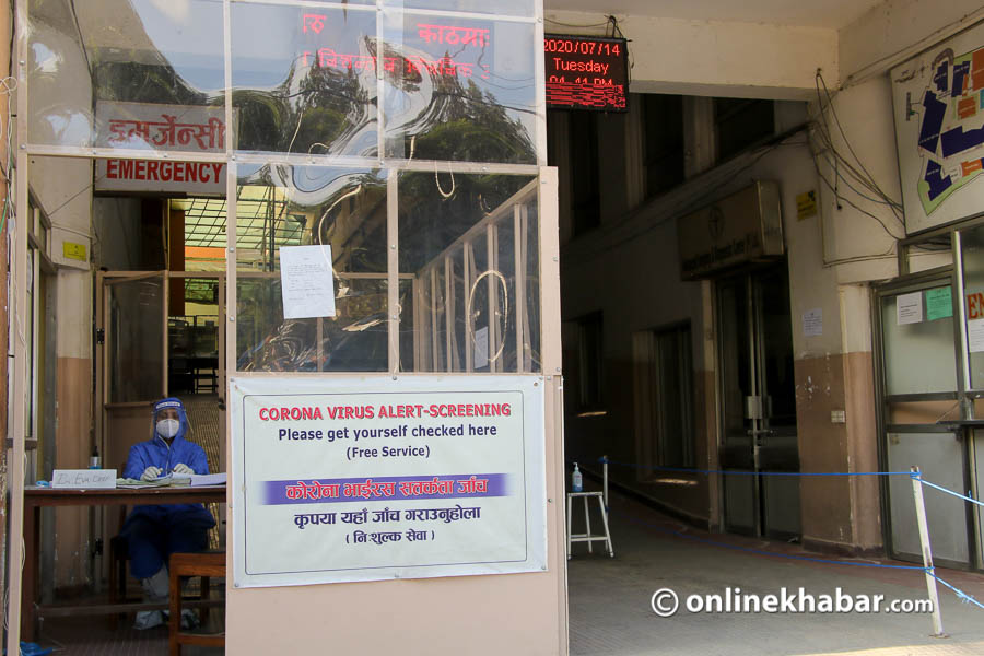हामी पुग्दा एम्बुलेन्समा बिरामी ल्याइएको थियो । उनलाई पहिले स्क्रिनिङ युनिटमा लगियो । त्यहाँ ड्युटीमा खटिएकी एक नर्सले बिरामीको शरीरको तापक्रम र ब्लड प्रेसर नापिन्, बिरामीको स्वास्थ्य अवस्था र ट्राभल हिस्ट्रीको रेकर्ड राखिन् । पहिले उपचार गरिएको रिपोर्ट कार्ड र औषधिको अपडेट लिइन् । त्यसपछि बल्ल इमर्जेन्सी वार्डमा लैजान अनुमति दिइन् । उनका अनुसार बिरामीलाई ज्वरो आएको वा संक्रमण फैलिएको क्षेत्रबाट आएको भए छुट्टै आइसोलेसनमा पठाइन्थ्यो, पीसीआर टेस्टका लागि स्वाब लिएर मात्र उपचार गरिन्थ्यो ।